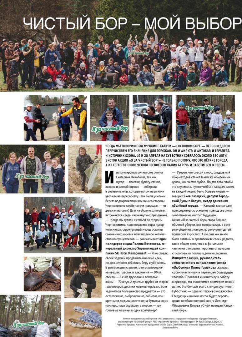 ВСЁ НАЧАЛОСЬ В МАЕ 2018 ГОДА С АКЦИИ «Я ЗА ЧИСТЫЙ БОР», НА КОТОРУЮ ВЫШЛО 100 КАЛУЖАН. В МАЕ 2019 НАС БЫЛО УЖЕ 300. ВЗРОСЛЫЕ И ДЕТИ СОБРАЛИ, ОТСОРТИРОВАЛИ И ВЫВЕЗЛИ 3 ГРУЗОВЫЕ МАШИНЫ И ОДИН КОНТЕЙНЕР МУСОРА, 90 КГ ПЛАСТИКА И АЛЮМИНИЯ, 638 КГ СТЕКЛА, 70 ШТ. ГРУЗОВЫХ И ЛЕГКОВЫХ ШИН, 2 ЛУЧЕВЫХ МОНИТОРА. В СЕНТЯБРЕ 2019 СТАРТОВАЛ ПЕРВЫЙ ЭТАП ПРОГРАММЫ «МОЙ ВЫБОР» - АКЦИЯ «ЧИСТЫЙ БОР – ЧИСТЫЙ ГОРОД», НА КОТОРОЙ БЫЛО СОБРАНО 740 КГ СТЕКЛА, 647 КГ ПЛАСТИКА, БОЛЕЕ 5 ТОНН ОБЩЕГО НЕПЕРАБАТЫВАЕМОГО МУСОРА |